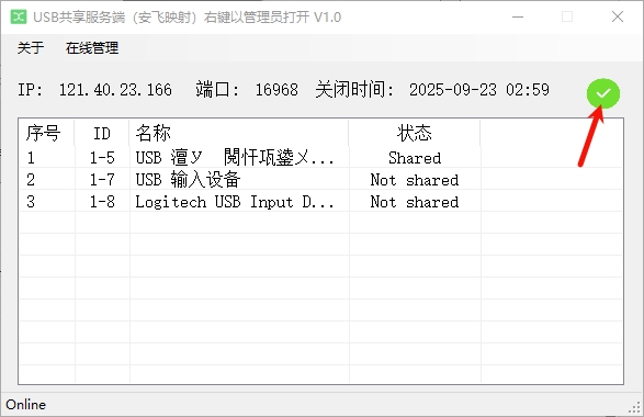 (2)软件将显示共享的USB列表。